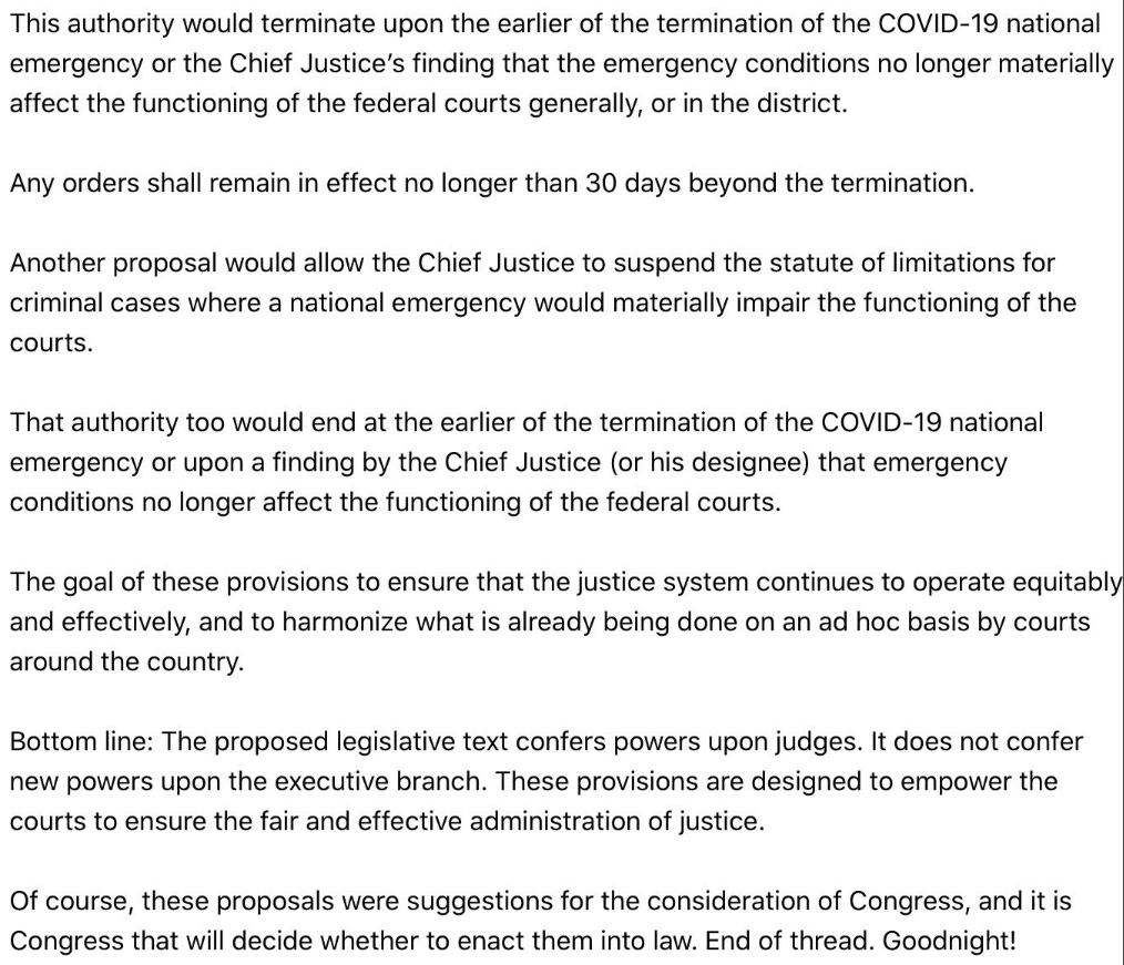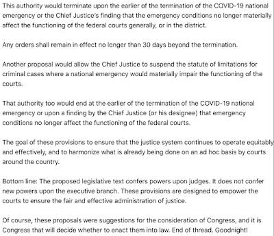 The Justice Department has quietly asked Congress for the ability to ask chief judges to detain people indefinitely without trial during emergencies — part of a push for new powers that comes as the novel coronavirus spreads throughout the United States. [More]Why not? It worked against "terrorism."