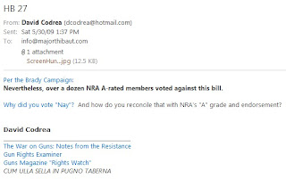 I figure it's up to Louisiana gun activists to do a comprehensive match up for all the reps to find out who the dozen were, but I did a credibility test for 2008. Here are the NRA ratings and endorsement: