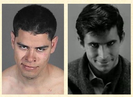 His psycho mug shot sure looked familiar, inspiring a "separated at birth" insight: