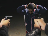 In this week's crime reenactment: An evening is interrupted by a television news report with breaking news that a man has evaded the law and is on the run in the local area. Three citizens go hunting for the threat.