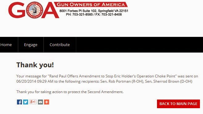 Rand Paul Offers Amendment to Stop Eric Holder’s Operation Choke Point [More]We've talked about this outrageous bit of tyranny-motivated financial engineering here and here. Now GOA gives us a chance to help do something about it.