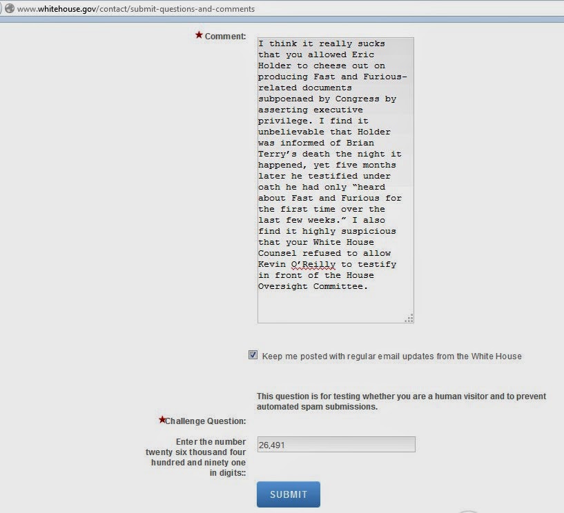 I sent a message to Obama as part of my upcoming Gun Rights Examiner article. This blog post will be a link in that piece.