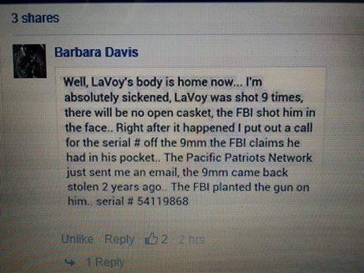 What if the recovered gun was stolen? Have we ruled out the possibility it was bought through a private sale, and LaVoy did not know? (And that alone would arouse other suspicions that would be pretty convenient at a time the feds are trying to suppress those.)