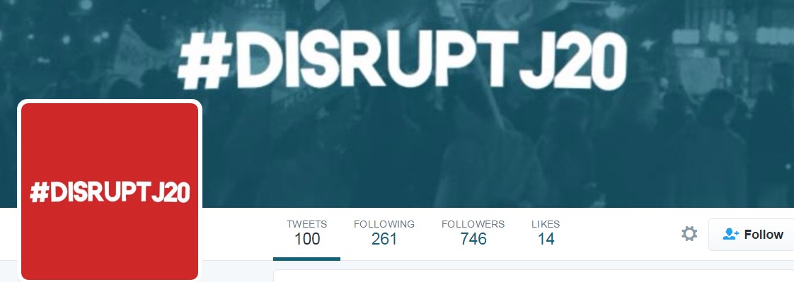 “I’ll bet when their 40,000 followers read this article and learn that DisruptJ20 originally intended to protest Hillary Clinton’s inauguration, their membership roster dries up faster than Jill Stein’s Recount donations.” NavyJack [More]Is that the number they're claiming? You'd think they'd be doing better than this on Twitter: